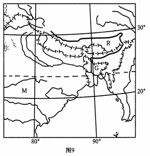(3)R河谷地是我国西藏重要的农业区,这里发展农业的有利自然条件是什么? (6分)