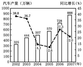29.从2002-2007年我国汽车产量走势图可以看出,近些年来,我国汽车产量变化特点是