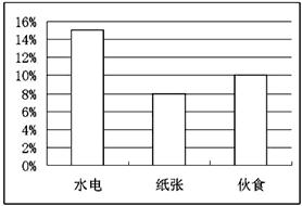 下图是你校2009年在水电、学生用纸、学生伙食人均费用与2008年比较的增长情况。从图表中看出,你校2009年学生的某些行为与哥本哈根世界气候大会及我国今年三月份“两会”倡导的“低碳、节能”不太相符。请你针对你校的情况,写一篇英语短文,发表在本校校园网络论坛上,告诉大家如何节能减排、建立“低碳”校园。