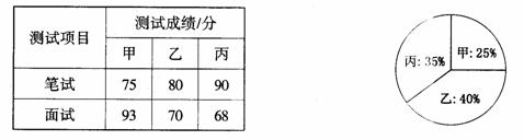 19、某单位欲从内部招聘管理人员一名,对甲、乙、丙三名候选人进行了笔试和面试两项测试,三人的测试成绩如下表所示: