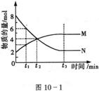 12.在一定温度下,容器内某一反应中M、N的物质的量随时间变化的曲线如图10-1所示,下列表述中正确的是( )