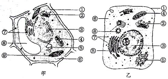 下图甲、乙分别是两类高等生物细胞的亚显微结构模式图,请据图回答: