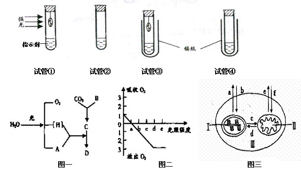 (2)能进行图一反应的是 试管(填字母)的叶片, 图一中的A、B、C依次代表