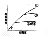 (4)下图曲线表示在4种实验条件下测定的不同光照强度对光合作用速率的影响。