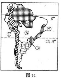图11是某大洲自然带分布示意图,读图回答21-22题。