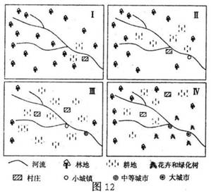 图12是我国东部某地区土地利用状况的变化过程示意图,读图回答23-24题。