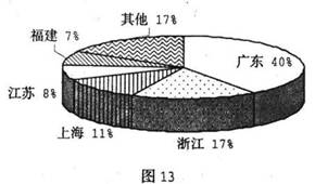 图13是2009年我国家具行业出口构成图,读图回答25-26题。