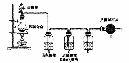 (2) 将m g铁碳合金样品放入A中,再加入适量的浓硫酸。未点燃酒精灯前,A、B均无明显现象,其原因是:________________________。C中足量的酸性KMnO4溶液所起的作用