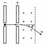一电子经加速电场加速后,垂直射入一匀强磁场区域,如图所示,电子从磁场边界射出的偏角