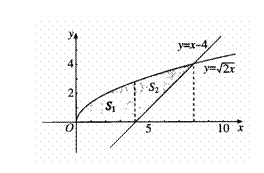 分析:首先画出草图(图1.7 一2 ) ,并设法把所求图形的面积问题转化为求曲边梯形的面积问题.与例 1 不同的是,还需把所求图形的面积分成两部分S1和S2.为了确定出被积函数和积分的上、下限,需要求出直线