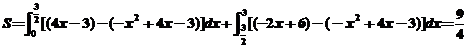 [分析]两条抛物线所围成的图形的面积,可以由以两条曲线所对应的曲边梯形的面积的差得到。