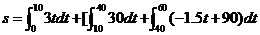 例 4。一辆汽车的速度一时间曲线如图1.7 一3 所示.求汽车在这1 min 行驶的路程.