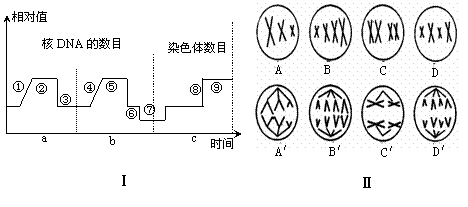 A.Ⅰ中染色体数目加倍发生在①、④、⑧和⑨4个时期