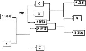 (14分)已知A为中学化学中的一种盐,B、C为日常生活中常见的金属.通常条件下D、G为无色无味气体.已知用惰性电极电解A溶液一段时间后,产物只有C、D和E的稀溶液.各物质之间的转化关系如下图(部分反应产物已略去).