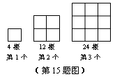15. 如图是由火柴棒搭成的几何图案,则第10个图案中有__________________根火柴棒.