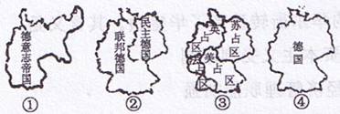 34.下列四幅地图反映了德国历史上的版图变化情况。其变化顺序正确的是