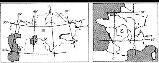 (1)与乙国比较,甲国的气温年较差和日较差有何不同?试分析其原因。(8分)