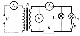 如图所示,B为理想变压器,接在原线圈上的交流电压U保持不变,R为定值电阻,电压表和电流表均为理想电表。当开关S闭合后,下列说法正确的是