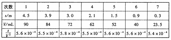 面下滑的距离,V为相应过程中量筒中收集的水量。分析表中数据,根据
