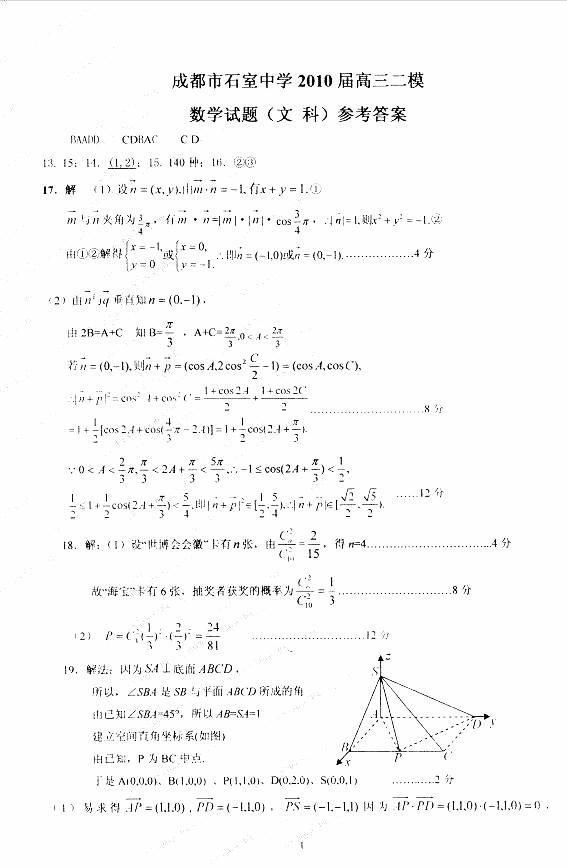 18.(12分)某社区举办2010年上海世博会知识宣传活动,进行现场抽奖,抽奖规则是:盒中装有10张大小相同的精美卡片,卡片上分别印有“世博会会徽”或“海宝”(世博会吉祥物)图案,参加者每次从盒中抽取卡片两张,若抽到两张都是“海宝”卡即可获奖。