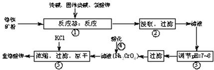 在反应器中,有Na2CrO4生成,同时Fe2O3转变为NaFeO2,杂质SiO2、Al2O3与纯碱反应转变为可溶性盐。氧化铝与碳酸钠发生的反应为Al2O3 + Na2CO3        2NaAlO2 +CO2↑,生成的偏铝酸钠(NaAlO2)可与水反应NaAlO2+2H2O     NaAl(OH)4