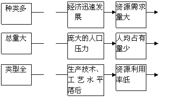 (5)上述地区出现的问题说明了我国面临着深刻的 。从一定程度上讲这一问题的产生是由于我国面临庞大的 和 、 _______________所成,这些都是促进我国走可持续发展道路的重要原因。