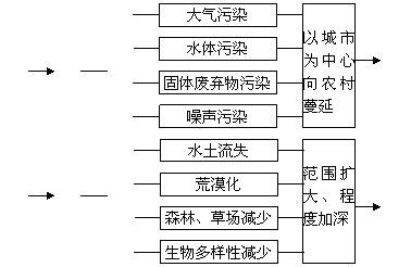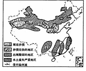 解析:由于我国面临着庞大的人口压力、资源短缺和深刻的环境危机,总结国内外的经验,我国的发展只能走可持续发展道路。本题以我国面临的环境危机为切入点,考核学生对我国各地面临的严重环境问题、生产原因、治理措施的认识和对可持续发展重大措施的了解,从而使学生进一步认识我国走可持续发展道路的必要性。