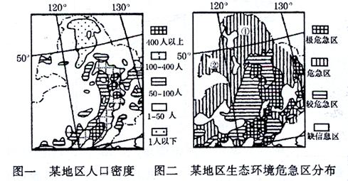 1.图中生态环境极危急区与该地区人口的分布有何关系?试说明其原因。