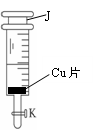 (2)打开阀门K,取下活塞J向其中加入一小片铜片,装上活塞并推至底部;
