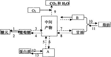 32.(10分)下图是人体肝细胞中三大营养物质代谢部分途径示意图,回答相关问题.箭头及其旁边的数字代表过程.