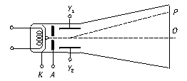 2.示波管的示意图如图2-9-2所示,K、A为加速电极,Y1、Y2是偏转电极,OP是粒子到达屏上的偏转距离.当质量不同而电荷相同的带电粒子进入示波管经电场加速和偏转后打到荧光屏上,则下列说法中正确的是