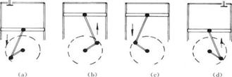 (3).(本题4分)摩托车的气缸工作需要经过如图所示的四个过程:图(a)过程为活塞向下运动,吸人空气和汽油蒸气的混合气体;图(b)过程为活塞向上运动,压缩混合气体使其压强增大温度升高;图(c)是爆发过程,汽油蒸气在极短时间内燃烧使缸内气体温度升高、压强增大,推动活塞向下运动做功;图(d)过程为活塞向上运动排除气缸内废气.假定活塞的截面积S=20cm2,活塞的最低位置离气缸顶端距离d1=10cm,活塞的最高位置离气缸顶端距离d2=3cm,吸入空气和汽油蒸气的混合气体压强p1=1×105Pa、温度T1=300K,压缩后气体压强达到p2=6×105Pa,汽油蒸气燃烧能使缸内气体温度升高到T3=2000K,那么: