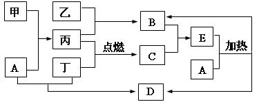 32.(18分)下列框图所示的物质转化关系中,甲是日常生活中常见的金属,乙、丙、丁是常见的气体单质。气体B与气体C相遇产生大量的白烟生成E,A是强碱,D是海水中浓度最高的盐(部分反应物和生成物及水已略去)。