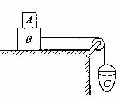如图所示,物块A、B叠放在水平桌面上,装砂的小桶C通过细钱牵引A、B一起在水平桌面上向右加速运动,设A、B间的摩擦力为