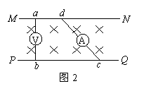 3.如图2所示,在匀强磁场中,MN和PQ是两条平行的金属导轨,而ab与cd为串有理想电压表和理想电流表的两根金属棒,当两棒以相同速度向右运动时,正确的是( )