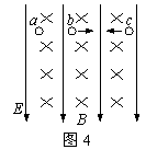 5.如图4所示,匀强电场的方向竖直向下,匀强磁场方向垂直于纸面向里,三个油滴a、b、c带有等量同种电荷,其中a静止,b向右做匀速直线运动,c向左做匀速直线运动,比较它们的重力Ga、Gb、Gc间的关系,正确的是( )