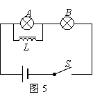 6.在图5所示的电路中,L是自感系数足够大的线圈(直流电阻不计),A、B为两只相同的灯泡,下列说法中正确的是( )
