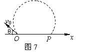 如图7所示,在x轴上方有匀强磁场,磁感应强度为B,一质量为m,带电荷量为q的粒子以速度v0从坐标原点O射入磁场(磁场方向与纸面垂直),v0与x轴负方向的夹角为θ(θ<900),不计重力,粒子在磁场中飞行的时间t和飞出磁场的坐标x为( )