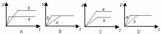 14.等质量的两份锌粉a和b,分别加入过量的稀硫酸中,a中同时加入少量CuSO4溶液,下列各图中表示其产生氢气总体积(V)与时间(t)的关系正确的是 ( )