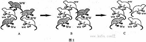 (4)小岛上蜥蜴原种的脚趾逐渐出现两种性状,W代表蜥蜴脚趾的分趾基因;w代表联趾(趾间有蹼)基因。图2表示这两种性状比例变化的过程。