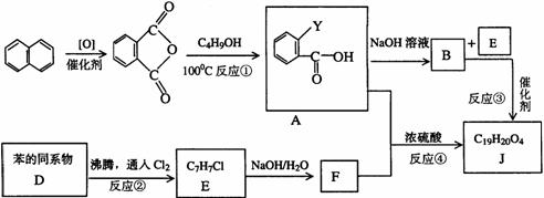 33. (16分)某有机物J(C19H20O4)不溶于水,毒性低,与聚氯乙烯、聚乙烯等树脂具有良好相容性,是塑料工业主要增塑剂,可以用下列方法合成之:
