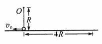 35.如图所示,长为R的轻绳,上端固定在O点,下端连接一只小球。小球接近地面,处于静止状态。现给小球一沿水平方向的初速度,小球开始在竖直平面内做圆周运动。设小球到达最高点时绳突然断开,已知小球最后落在离小球最初位置4R的地面上,重力加速度为g。试求:(图中所标 v0的数值未知)