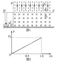 上、场强E=25V/m的匀强电场和垂直纸面向外、磁感应强度B2=5T的匀强磁场。现让小车始终保持v=2m/s的速度匀速向右运动,以带电小球刚经过磁场的边界PQ为计时的起点,用力传感器测得小球在管内运动的这段时间,小球对管侧壁的弹力