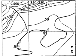 8.河滩A、B之间的河段,河流的流向大致为( )