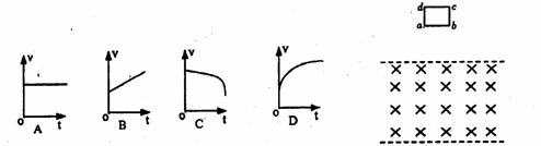 边刚进入磁场的这段时间内,线圈运动的速度图象可能是 ( )