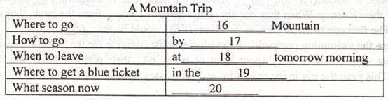 IV.听短文,根据所听到短文内容,完成下面的表格。(每空一词)(5分)