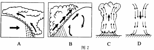3.下图中能够反映“莫拉克”台风气流运动特征的是 ( )