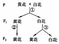 南瓜的花色是由一对等位基因(A和a)控制的,用一株开黄花的南瓜和一株开白花的南瓜杂交,子代(F1)既有开黄花的,也有开白花的。让F1自交产生F2,表现型如下图所示。下列说法不正确的是 ( )
