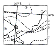 图7中虚线表示某地理要素的等值线(1-7表示相对数值大小)分布,该地理要素最有可能是 ( )