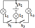 C.当S1、S3闭合, S2断开时,只有灯泡L1、L2发光